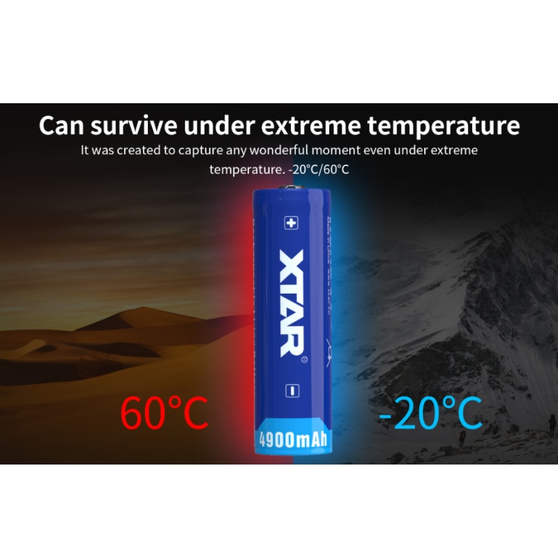 Xtar 21700 taaslaetav liitiumioonaku mahtuvusega 4900 mAh on kaitstud ülelaadimise, liigse tühjenemise, ülekoormuse ja lühise eest.